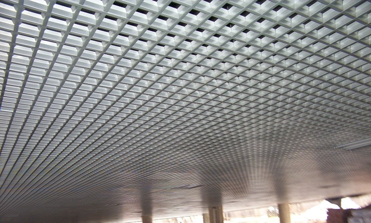 También posee perfiles de 15 mm de base por 38 mm de altura, formando así rejillas de 625 x 625 mm o de 625 x 1250 mm con cinta perimetral. Las rejillas quedan apoyadas sobre una estructura de perfiles “T15” invertidos, dando forma al techo y permitiendo la rápida remoción de las rejillas cuando sea necesario.